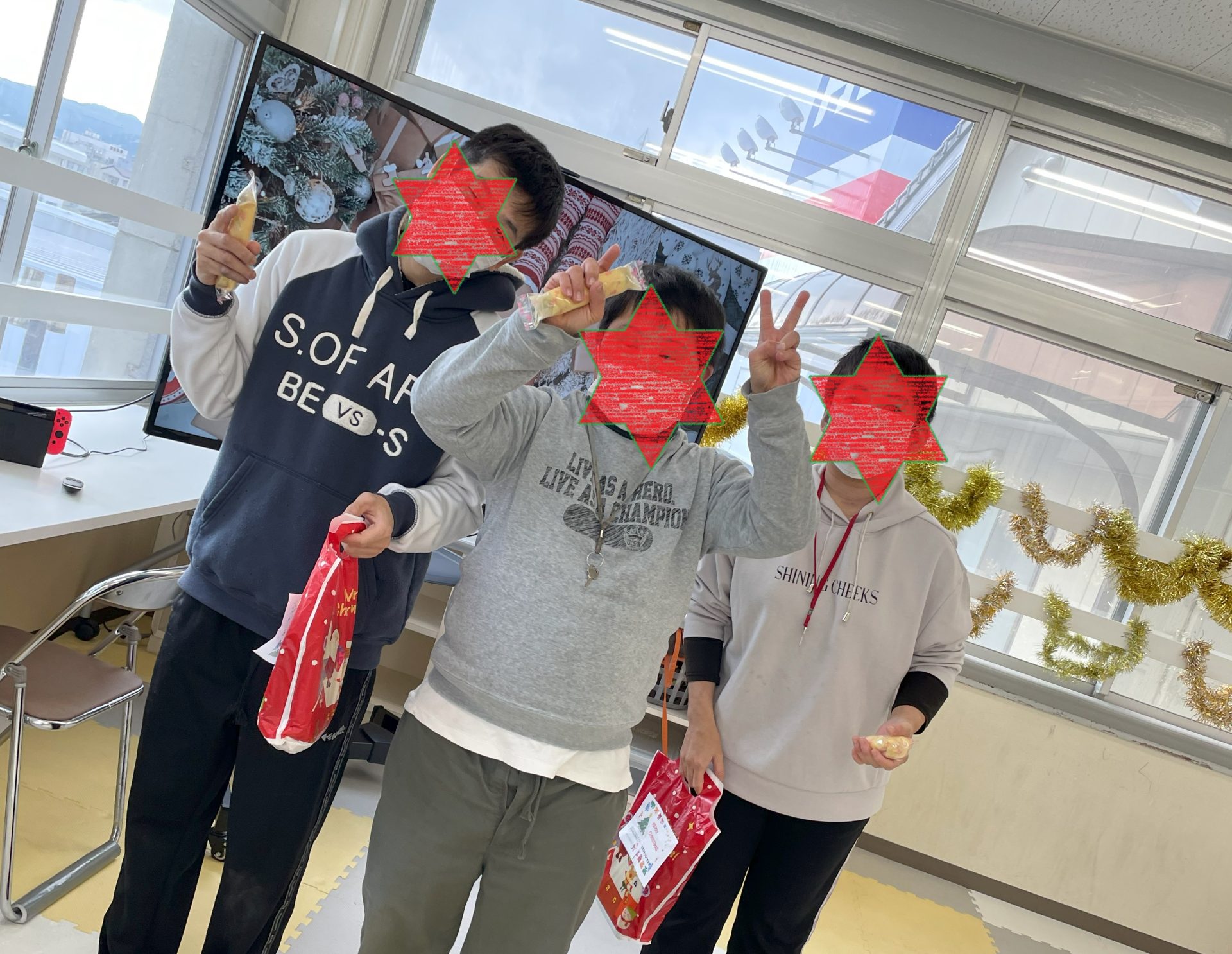 メリークリスマス🎅 クリスマス会が開催されました。コロナウイルスの影響で、感染対策をしながらの開催で、当施設内でも開催となりましたが、 今年も、みんなで集まれたことは素晴らしいことです。 部屋を飾りつけ、クリスマスソングを流し、クリスマスを祝いました。 今年も、育成会様からの「クリスマスプレゼント」と、井上塗装様からの「ケーキ」のプレゼントを頂きました。 毎年ありがとうございます。楽しい時間を過ごせました。 ...